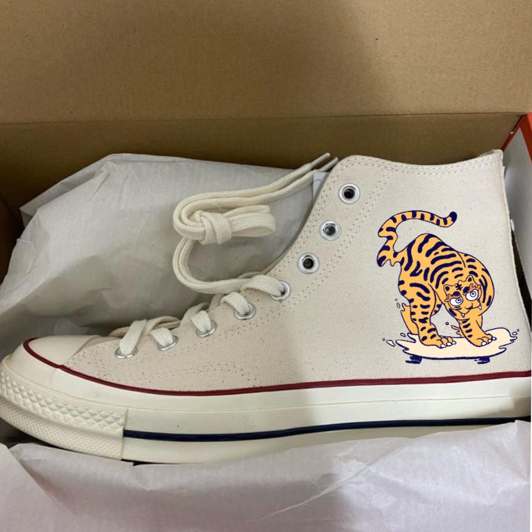 🐯 A skateboard-riding tiger inspired by traditional Korean tiger folk paintings.